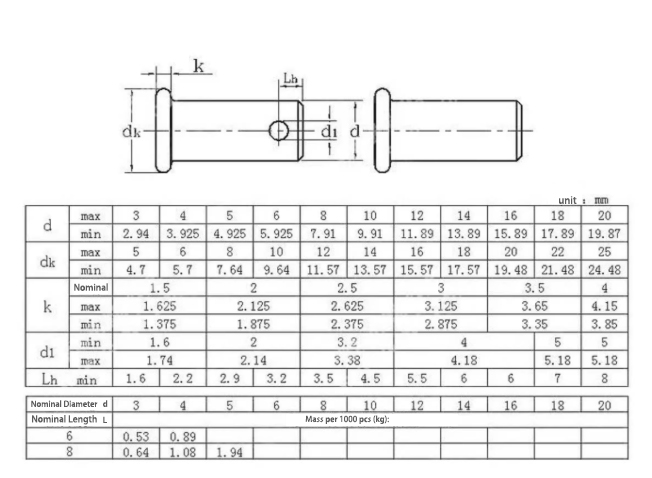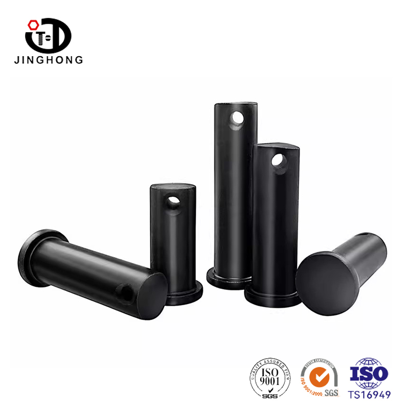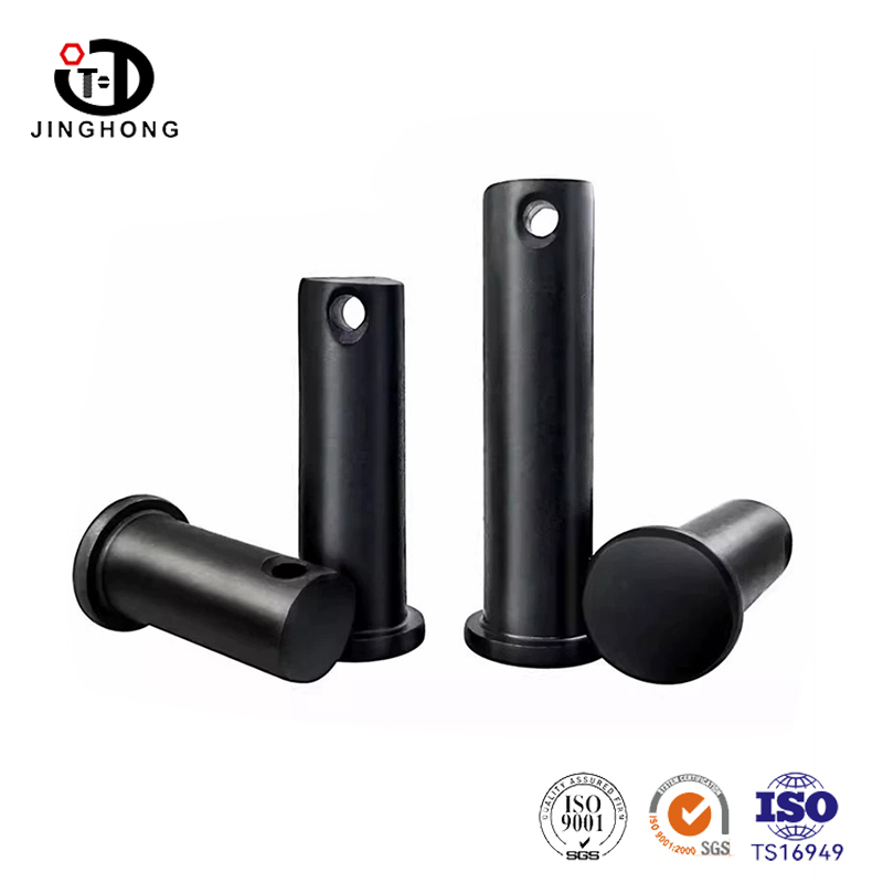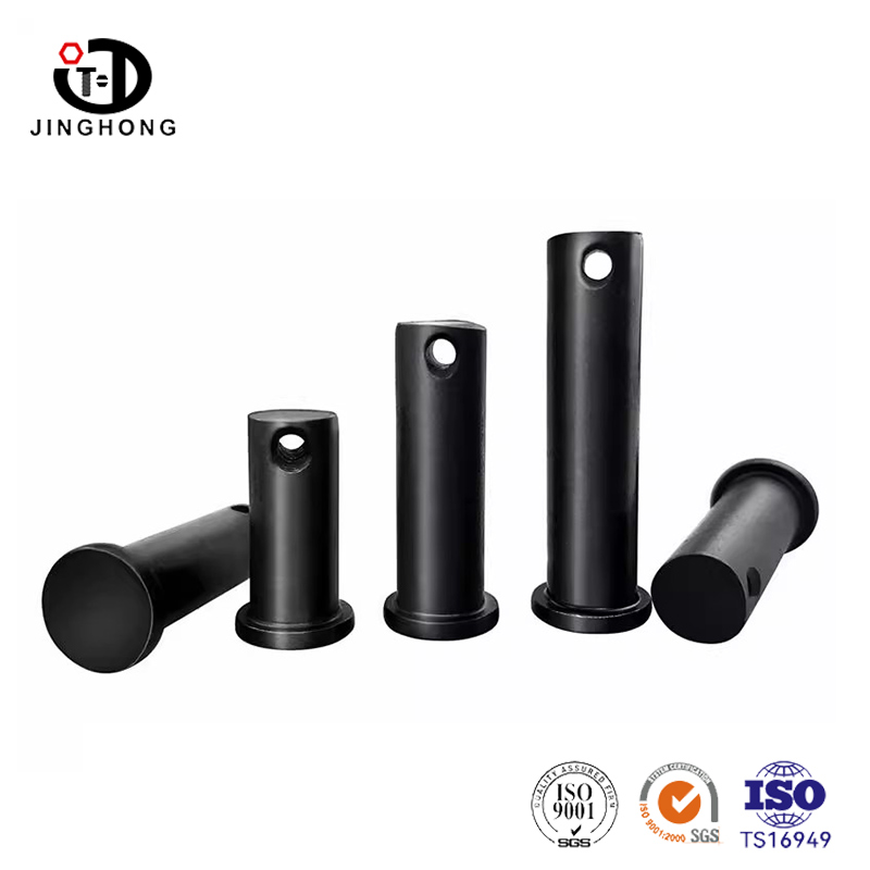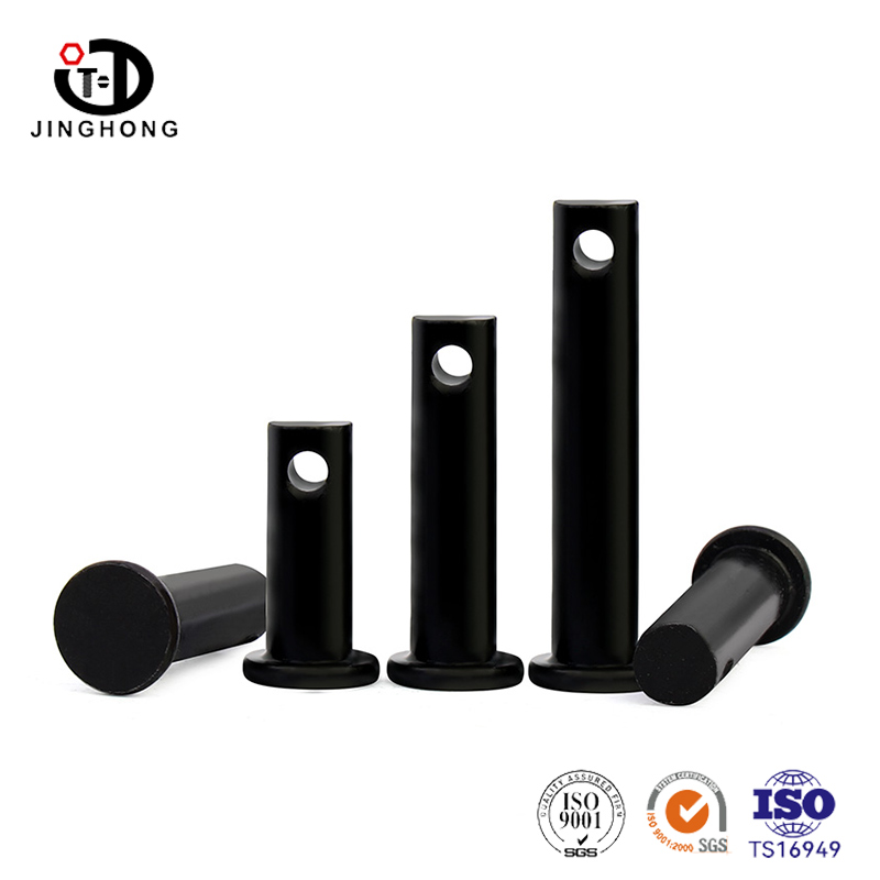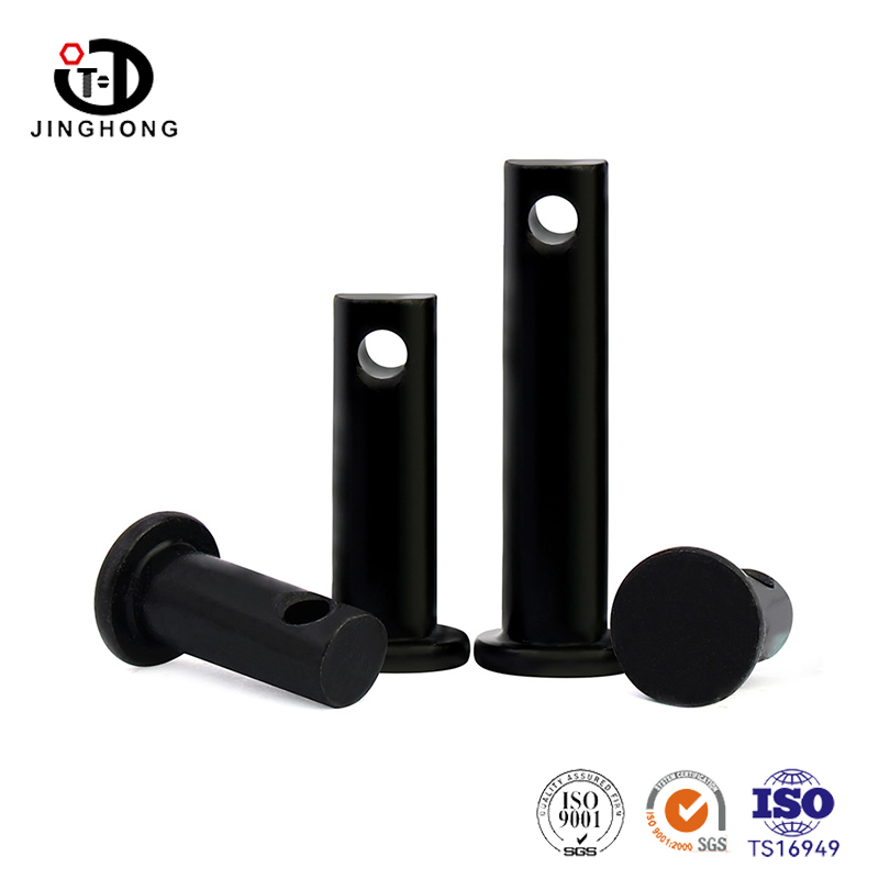 छेद वाला काला फ्लैट हेड पिन फ्लैट हेड और छेद वाले घटक वाला एक फास्टनर है। इस प्रकार के पिन के सपाट सिर को इंस्टॉलेशन भाग में डालना आसान है, और इसकी सपाट सतह एक अच्छी सहायक सतह प्रदान कर सकती है। इसके अलावा, कनेक्शन को अधिक विश्वसनीय बनाने और ढीला होने और गिरने से बचाने के लिए छेद में एक स्प्लिट पिन या सेफ्टी पिन डाला जा सकता है। इस प्रकार का पिन सभी प्रकार की मैकेनिकल असेंबली स्थितियों पर लागू होता है और इसका उपयोग उन स्थितियों में किया जा सकता है जिनके लिए स्थिर और सुरक्षित कनेक्शन अनुप्रयोगों की आवश्यकता होती है।