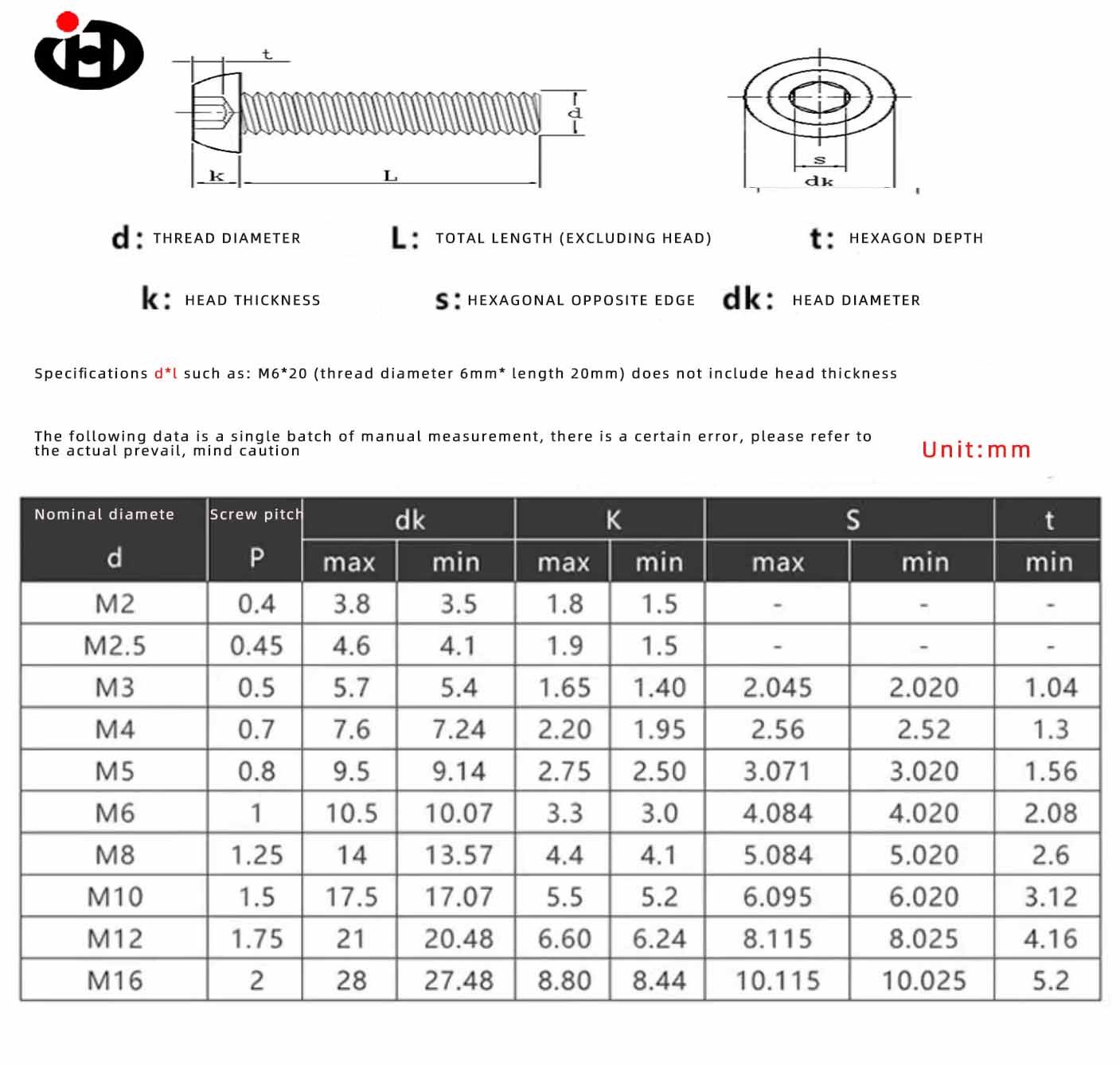 | नाम | आधा दौर हेक्सागोन सॉकेट स्क्रू |