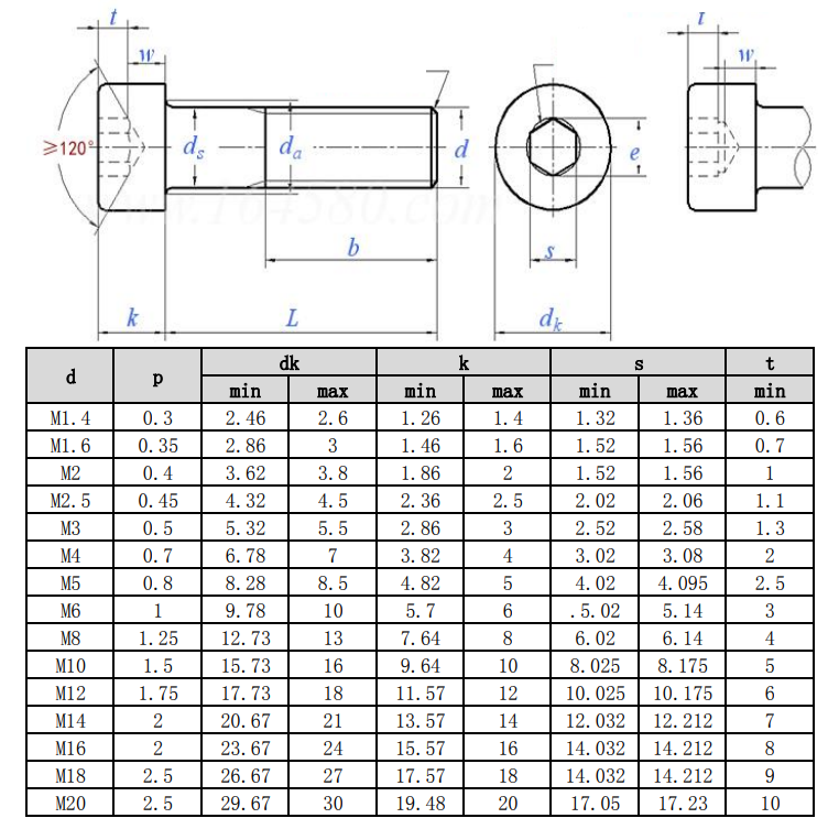 | आकार | M1.4-M20 |